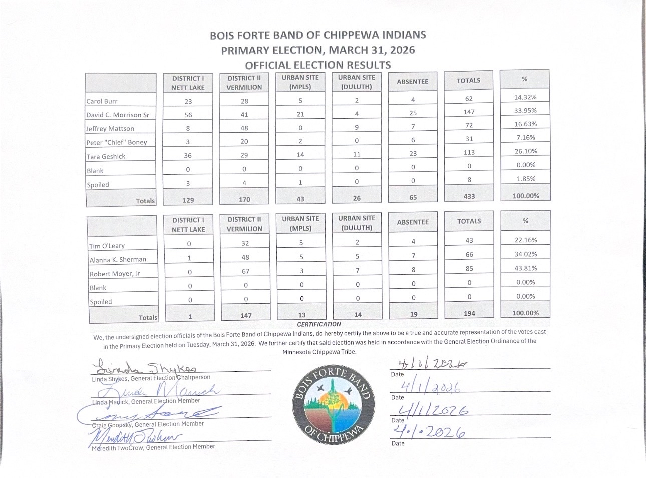Certified Primary Election Results – March 31, 2026